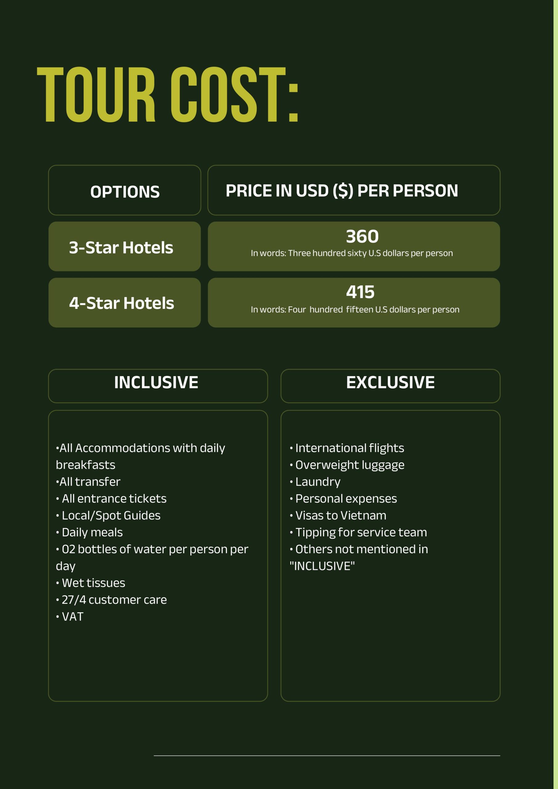 Tour Price