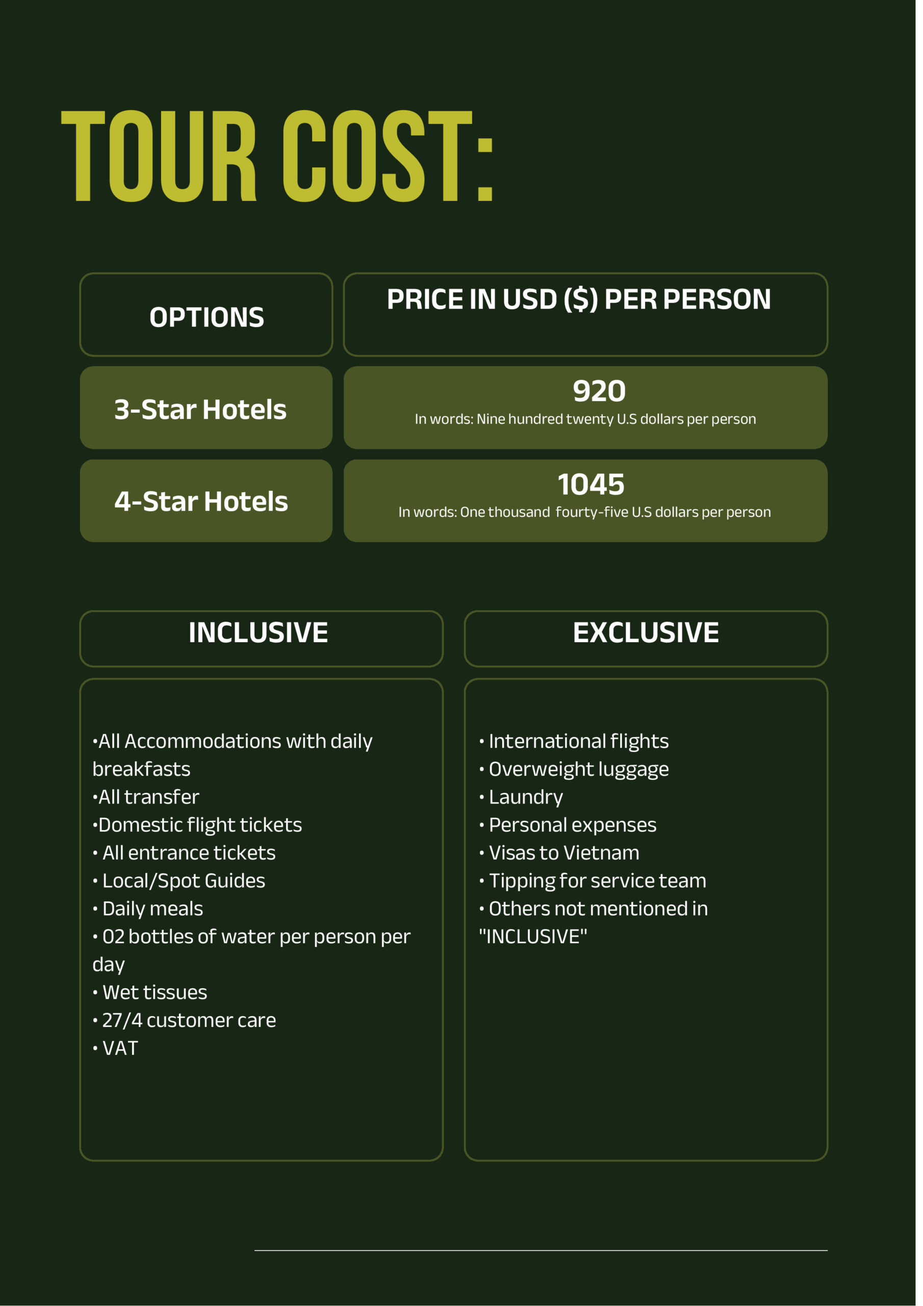 After receiving your Tour booking information, Saco Travel will contact you as soon as possible to confirm your Tour booking. Thank you!
